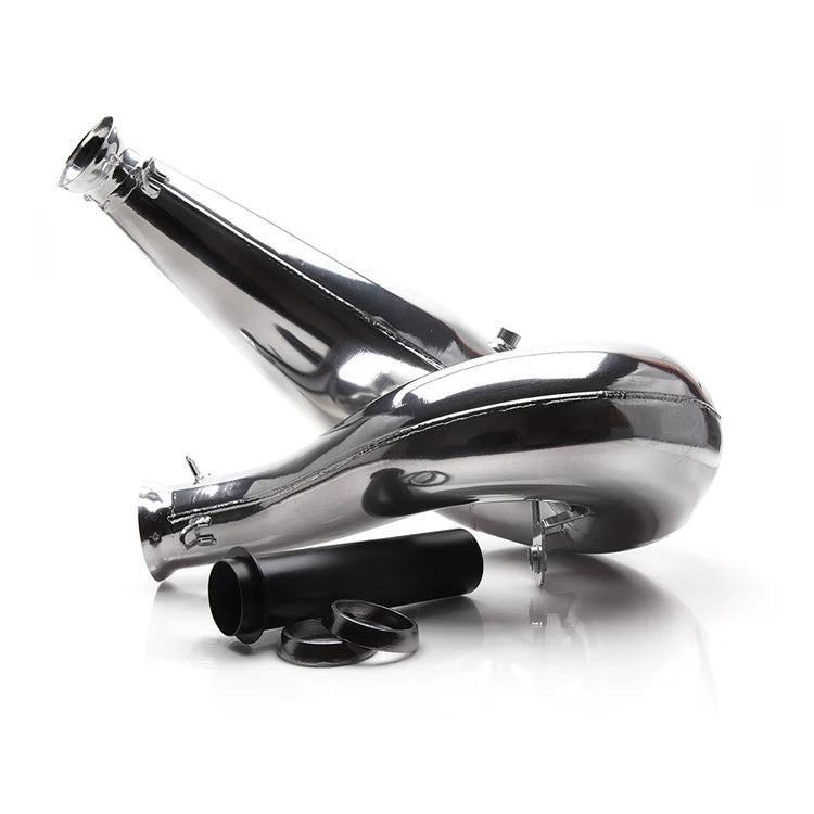 The industry's first changeable internal stinger for Ski-Doo allows for adjustments for high/low altitude or race application adjustments. Smaller stinger size will increase the pipe pressure and compensate for low pressure at high elevation. In race applications a smaller stinger will cause pipe to react much quicker and require less preheating of the pipe on a rev stand.